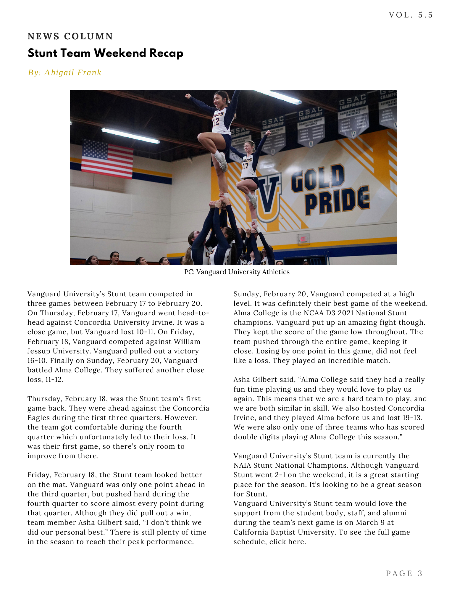 The Student Newspaper of Vanguard University